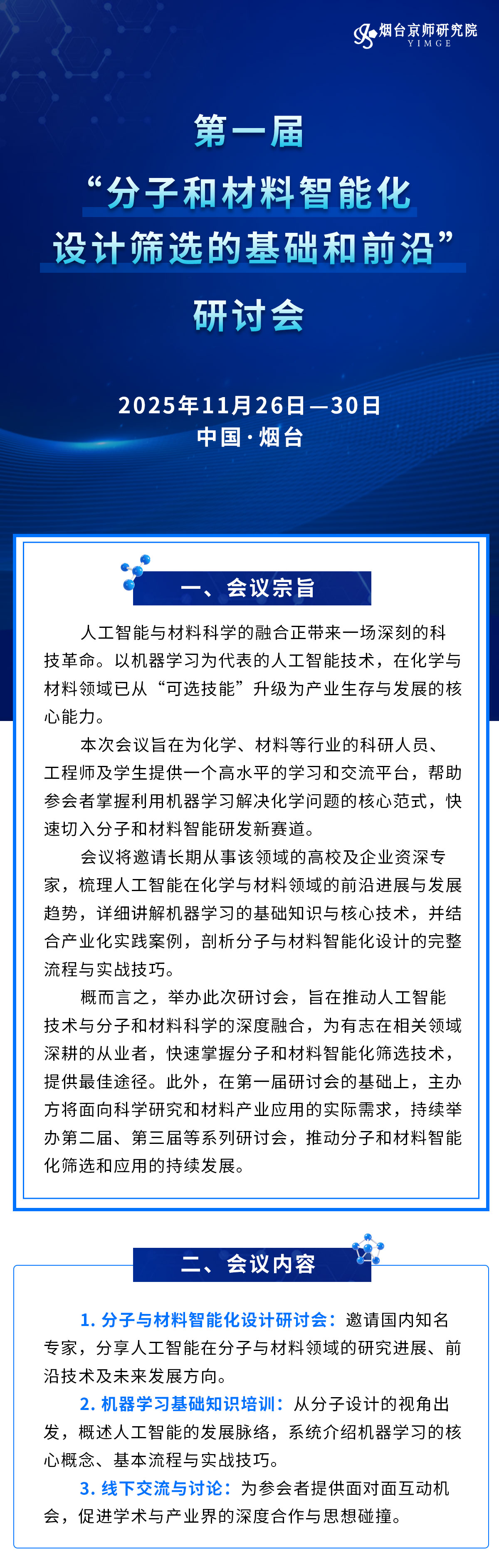 第一届“分子和材料智能化设计筛选的基础和前沿”研讨会(第一轮通知)